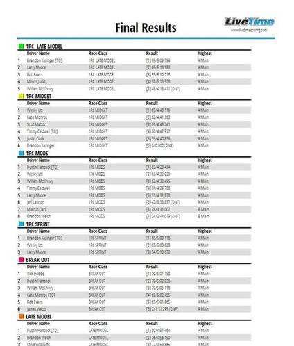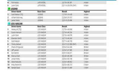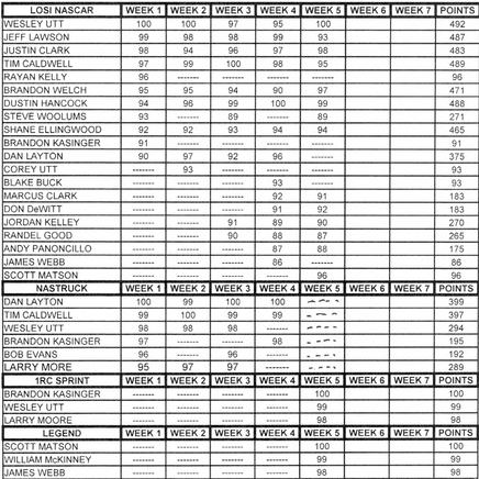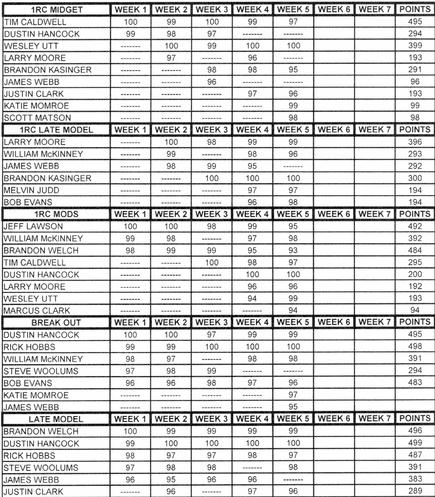 AUTUMN SERIES WEEK 5 OF 7 RESULTS