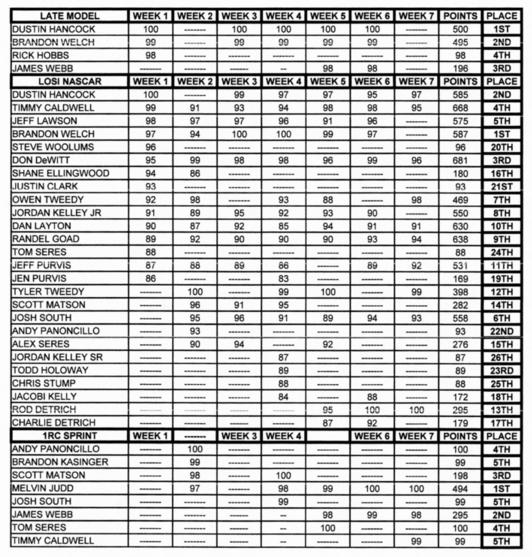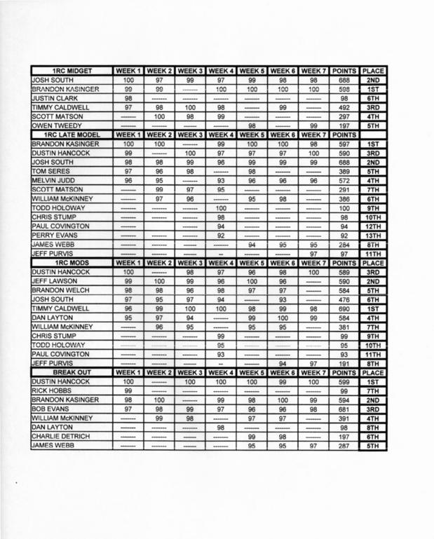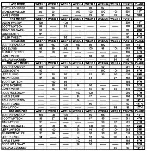 1RC MIDGET, LATE MODEL, SPRINT, MODIFIED (ALL MODIFIEDS ARE COMBINED AS ONE CLASS).