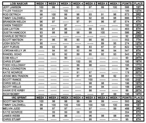 WEEK 7 (FINAL WEEK) OF WINTER 2026 POINTS SERIES