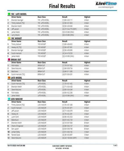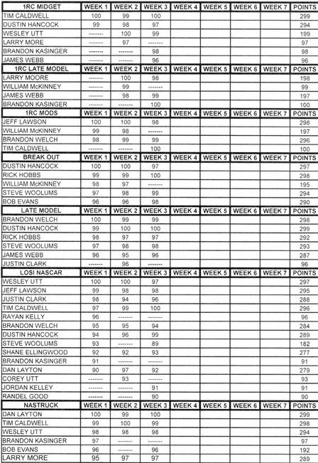 AUTUMN SERIES WEEK 3 OF 7 RESULTS