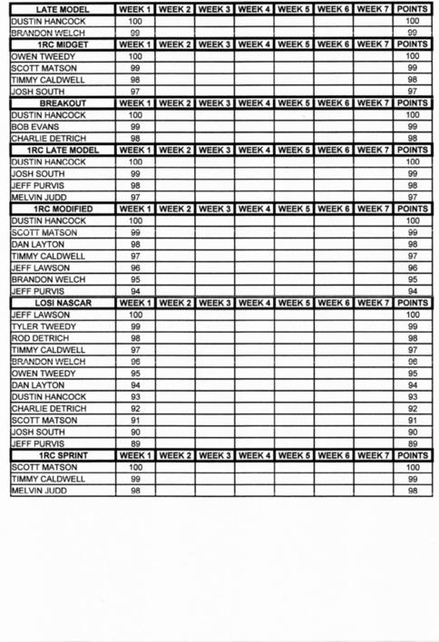 1RC MIDGET, LATE MODEL, SPRINT, MODIFIED (ALL MODIFIEDS ARE COMBINED AS ONE CLASS).